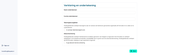 Tip: Je kan onder in het formulier altijd tussentijds opslaan en op een ander moment weer verder gaan.