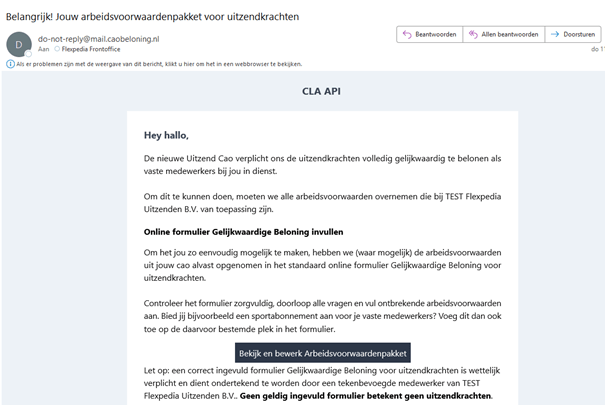 Flexpedia of jouw intermediair nodigt jou uit voor caobeloning.nl. Klik in de e-mail op de knop “Bekijk en bewerk Arbeidsvoorwaardenpakket”. Niks ontvangen? Check dan ook even je spam of ongewenste mail.