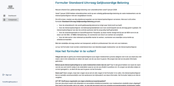 Vul in wie jullie zijn, voor welke functie(s) je inhuurt en welke cao of arbeidsvoorwaardenregeling geldt.